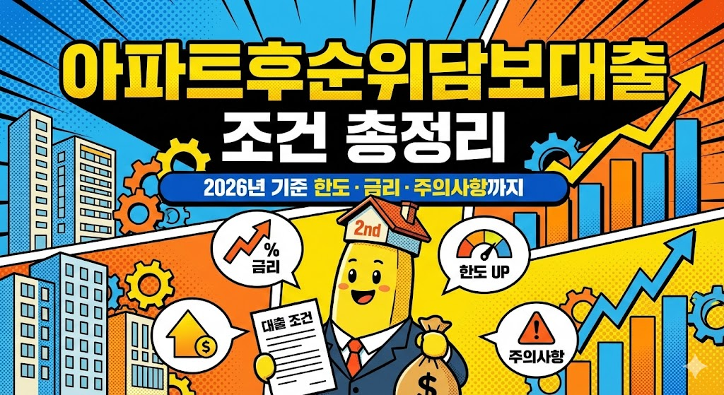 아파트후순위담보대출 조건 총정리 ☞2026년 기준 한도·금리·주의사항까지